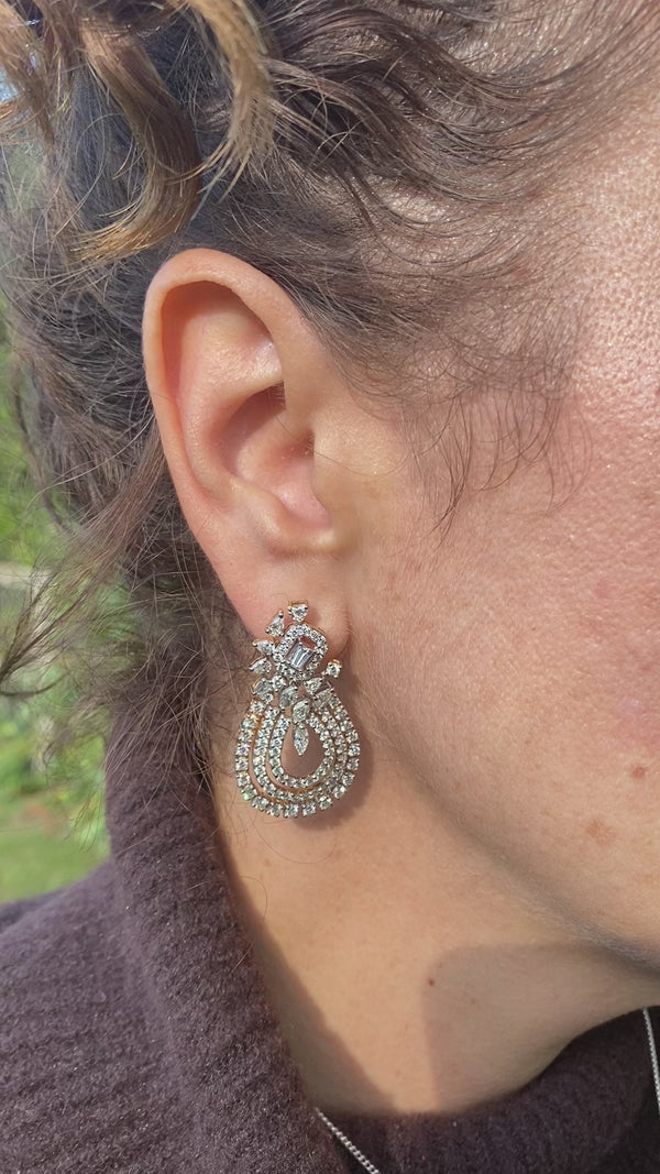 These are just FABULOUS earrings. Baguette diamonds, marquise diamonds, pear shape diamonds and brilliant cut diamonds totalling 5.80 carats. This is marked on the butterflies. All set in 18 carat yellow gold. They measure 4 cms in length and 2 cms at the widest point. Weight 19.70 grams.