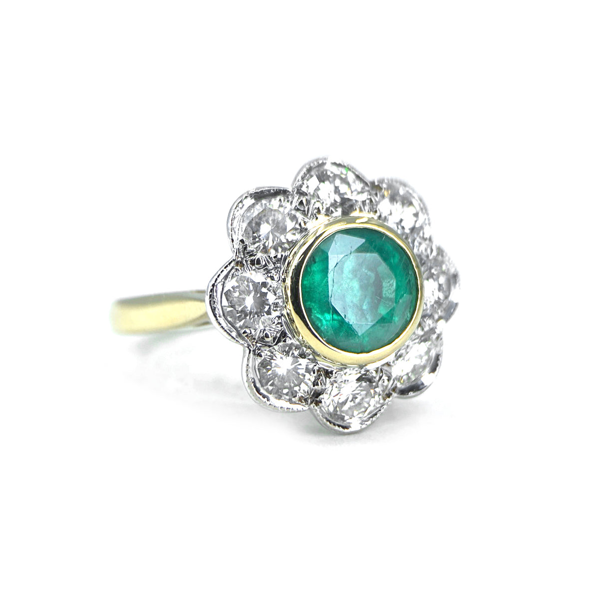 Emerald & Diamond Cluster Ring, Hallmark Sheffield 1999
