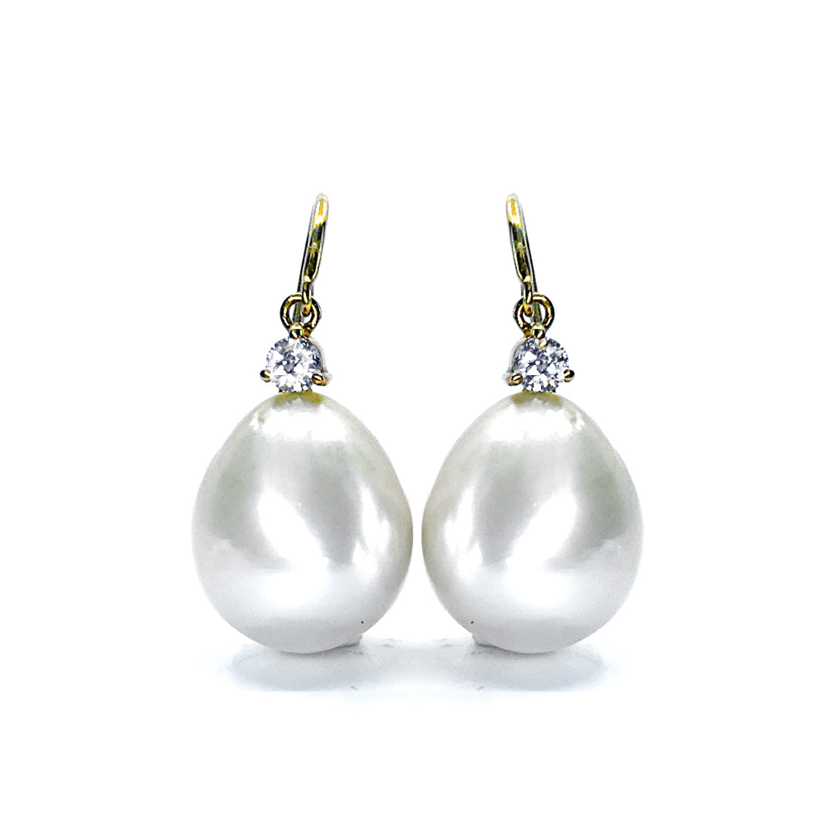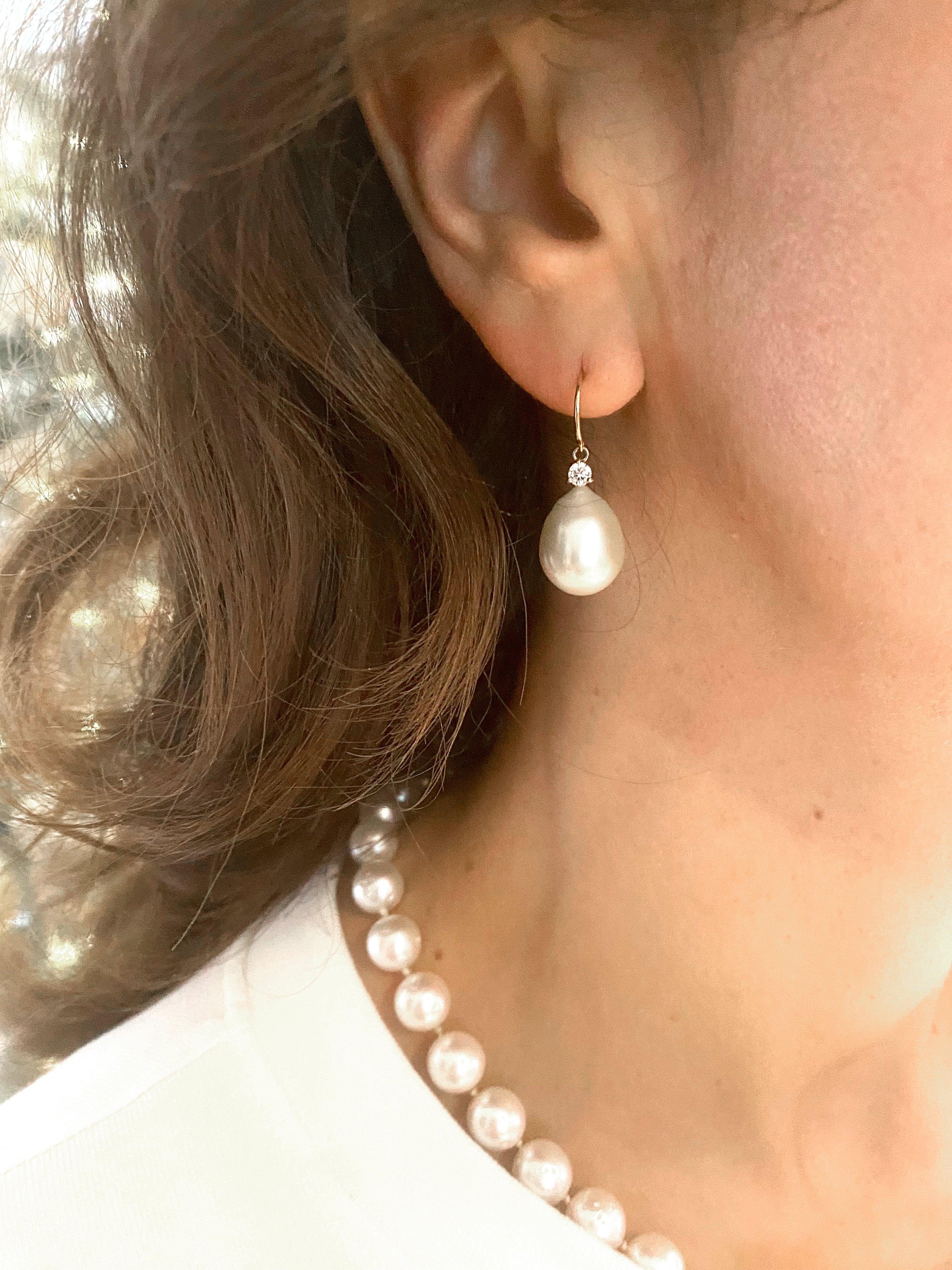 South Sea Pearl Pearshape Drop Earrings, Circa 2000